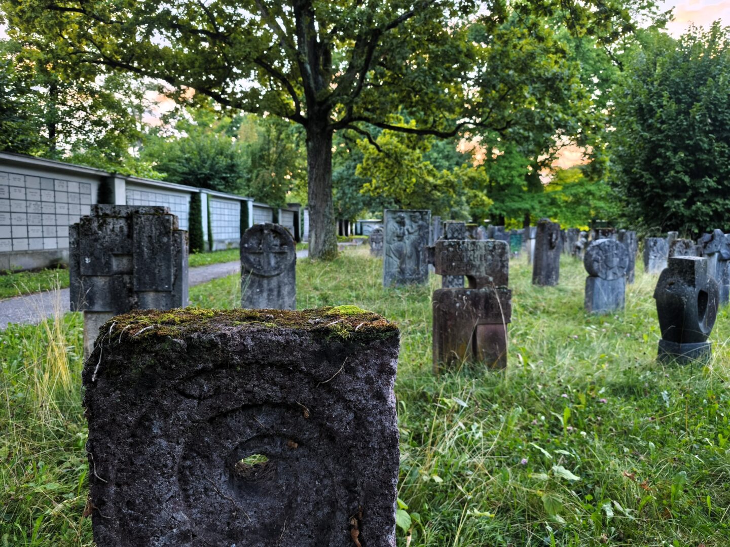 The event location was a cemetery in my neighborhood, a short bike ride away. On the way I still had my doubts: Don’t you have something better to do on a warm Friday night? I arrived. Right next to the gate there was a sign and grave candles guiding me around the corner.